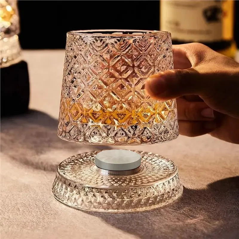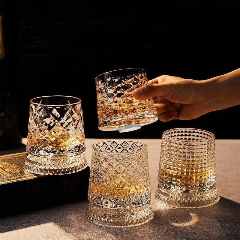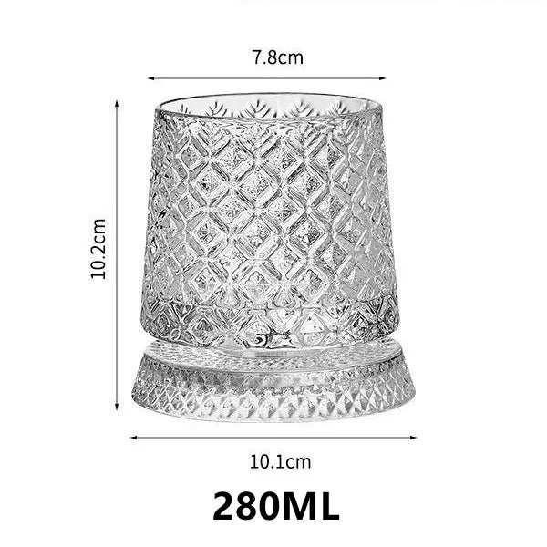 Dieses hochwertige , drehbare Whiskyglas macht jedes Einschenken zu einem raffinierten und interaktiven Ritual. Sein glatter, sich drehender Boden belüftet das Getränk sanft und verstärkt Aroma und Präsentation durch eine subtile, faszinierende Bewegung.